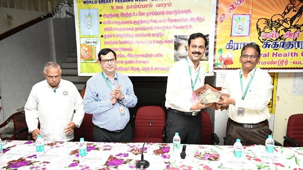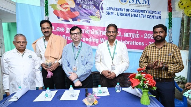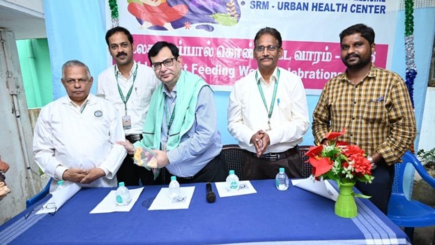 The Department of Community Medicine, SRM Medical College Hospital & Research Centre (SRMMCHRC), in collaboration with the SRM Urban Health Centre, organised a community health camp at Maraimalai Nagar, Chengalpattu, to observe World Breastfeeding Day 2025.