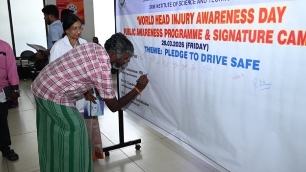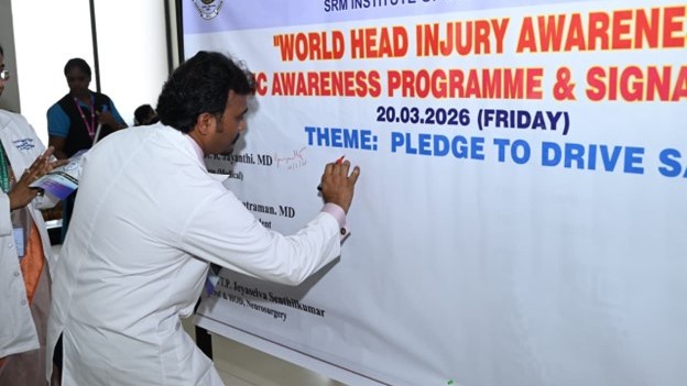 The Department of Neurosurgery at SRM Medical College Hospital & Research Centre observed World Head Injury Awareness Day on March 20, 2026, with a comprehensive awareness program aimed at promoting road safety and preventing head injuries.